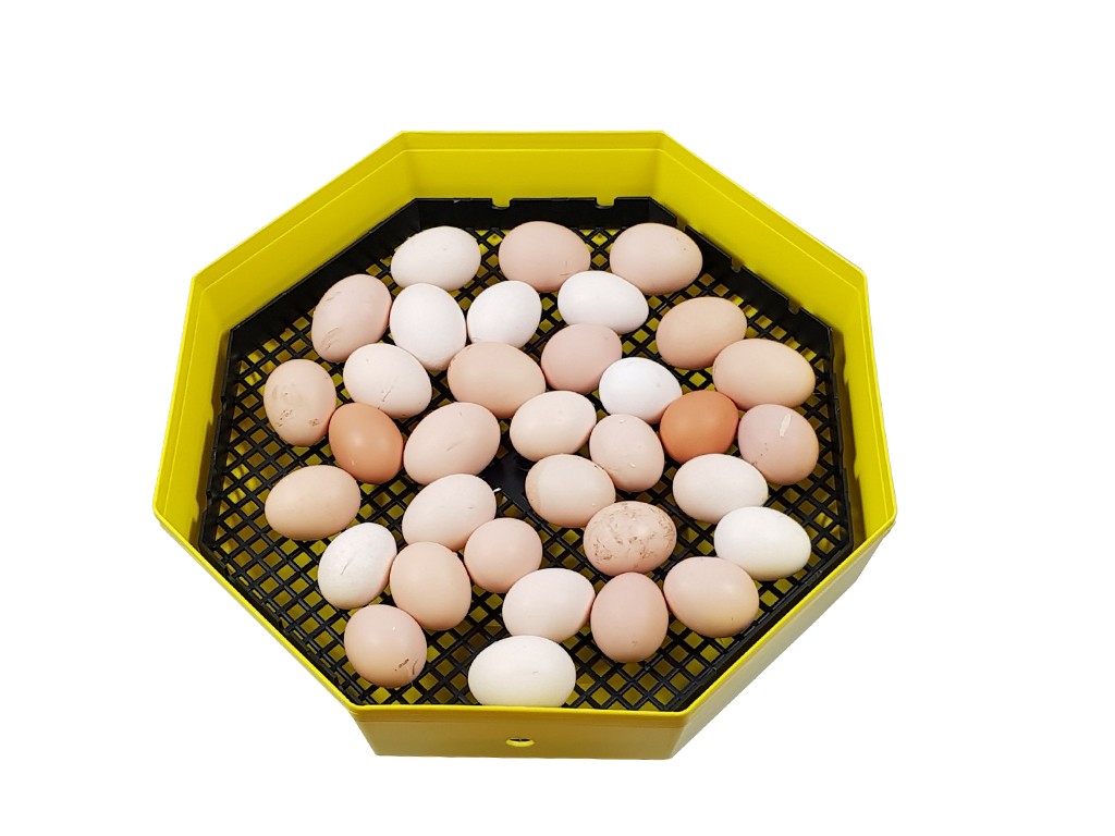Capacitate fără grilaj rotativ: 60 ouă de găină, 120 ouă de prepeliță, 30 ouă de gâscă, 50 ouă de rață sau 70 ouă de fazan.