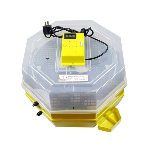 Incubator de ouă cu două etaje, potrivit pentru incubarea păsărilor de apă și a cocoșilor de munte - pentru găini, prepelițe, rațe, curcani, gâște și fazani. Cu întoarcere semiautomată pentru până la 82 de ouă de găină - posibilitate și de întoarcere manuală, cu control al temperaturii de la 35 la 40°C, cu control manual al umidității, cu rezervor de apă, cu termometru și higrometru.