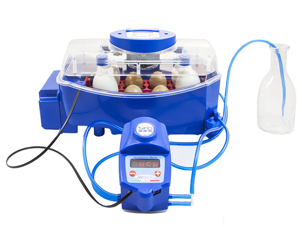 Potrivit pentru incubație în apă și pentru săparea vizuinelor de păsări de curte - pentru găini, prepelițe, rațe, curcani, gâște, dar și păsări exotice . Cu rotație automată până la 8 ouă - posibilitate de întoarcere manuală a ouălor, cu control digital al temperaturii de la 30 la 40°C, cu control digital al umidității - umidificator de aer SIRIO automat , cu rezervor de apă, termometru, higrometru și adaptor auto de 12V pentru eventuale pene de curent.