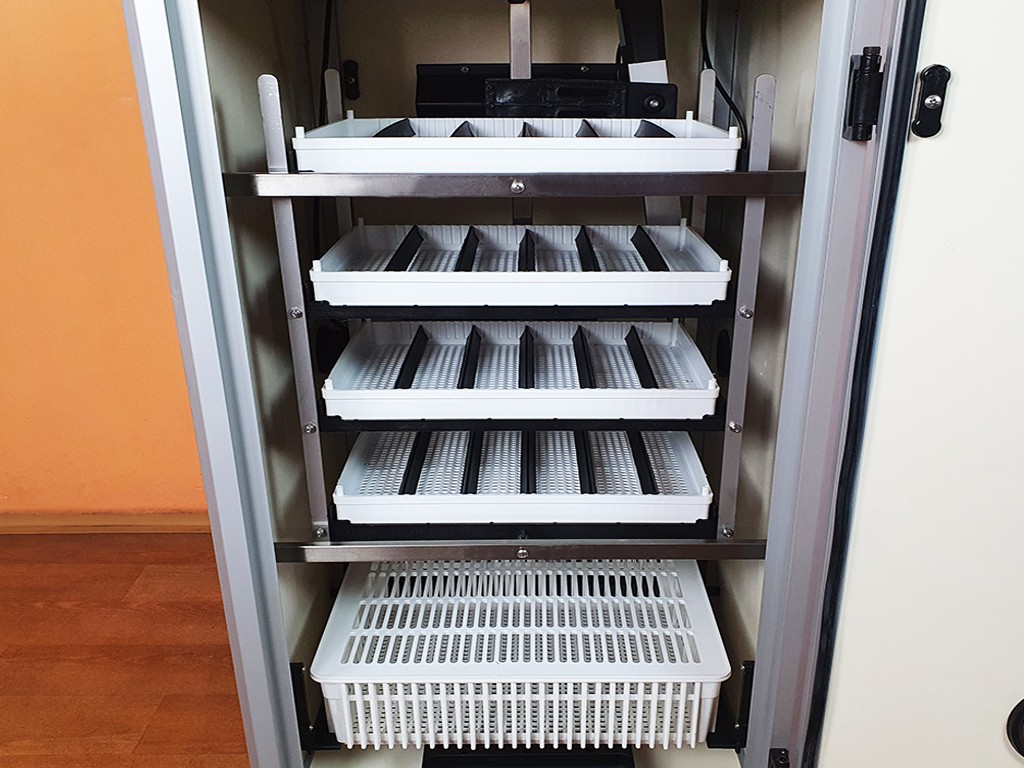 Capacitatea incubatorului: 140 ouă de găină, 396 ouă de prepeliță, 60 ouă de gâscă, 96 ouă de rață sau 192 ouă de fazan.