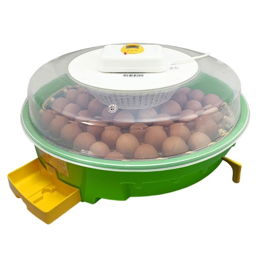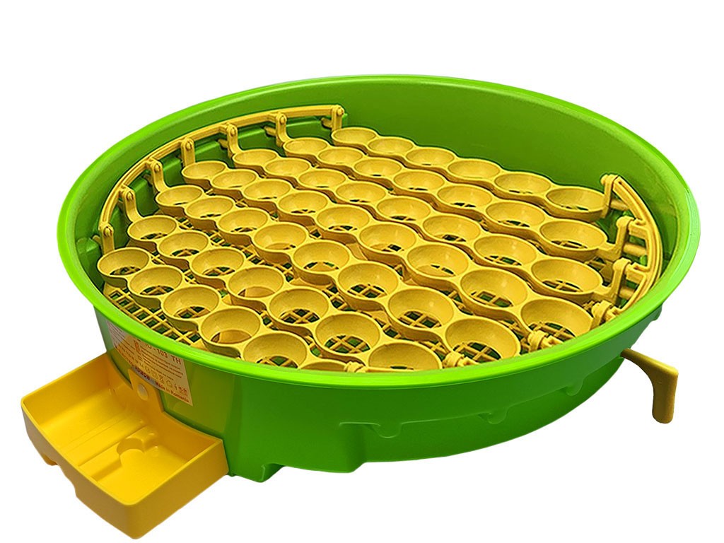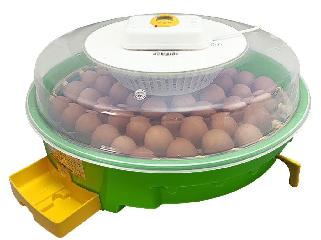 Incubator de ouă potrivit pentru incubarea păsărilor de apă și a păsărilor de curte care eclozează, cu întoarcere semiautomată, capacitate de 51 de ouă de găină, posibilitatea de întoarcere manuală a ouălor, fără control al temperaturii, setat la valoarea optimă, cu control manual al umidității, cu rezervor extern de reumplere cu apă , cu termometru, cu higrometru.
