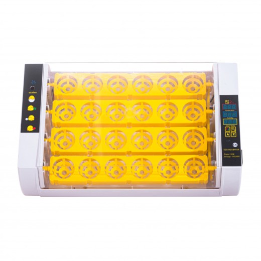 Vă prezentăm incubatorul inteligent YZ24A . Este un incubator și eclozator complet automat . Ouăle din incubator sunt întoarse la fiecare două ore. Folosind butoanele, puteți seta cu ușurință temperatura pe care o va menține incubatorul. Pe afișaj, puteți monitoriza temperatura din incubator, umiditatea din incubator și numărul de zile de la pornirea incubatorului. Sistemul de incubare vă permite, de asemenea, să setați diferite toleranțe ale termometrului (calibrare). Incubatorul are o alarmă sonoră inteligentă care vă va alerta atunci când umiditatea scade sub limita setată sau vă avertizează asupra temperaturilor scăzute sau ridicate. Capacitatea incubatorului este de 24 de ouă.
