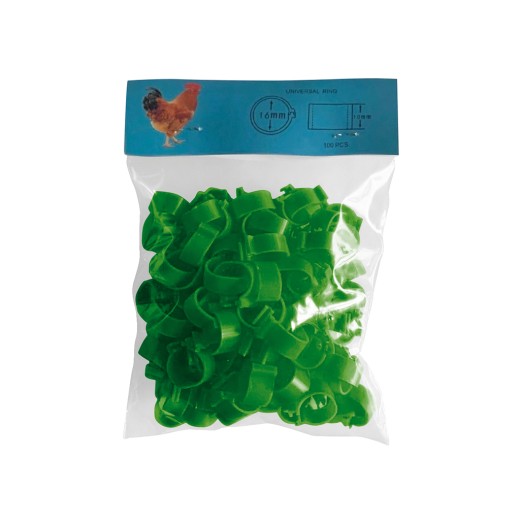 Inel de blocare pentru găini și rațe GAUN 16mm, 100 buc - verde