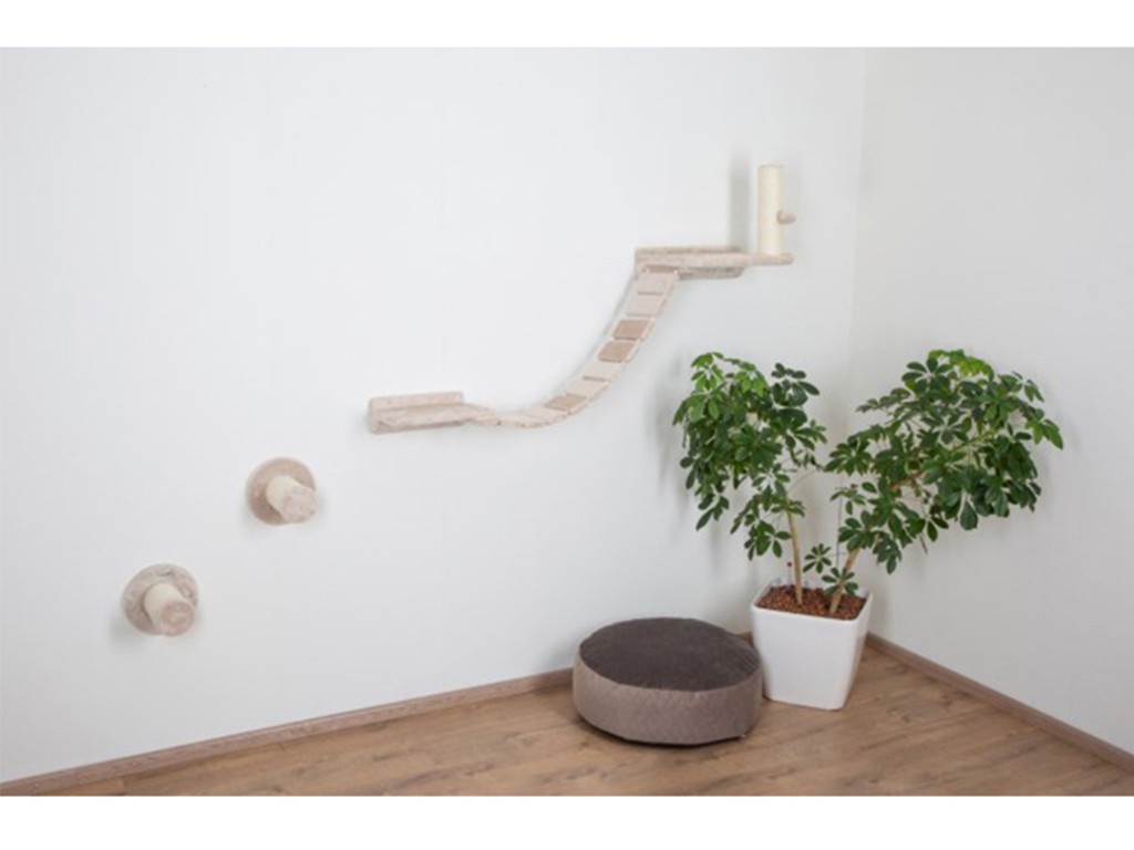 Set de rafturi de perete pentru pisici KERBL MATTERHORN, stâlp de zgâriat pentru pisici, bej, 6 buc.