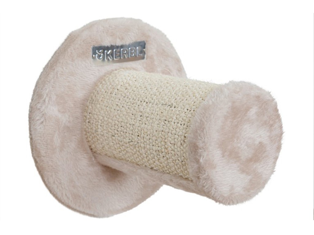 Stâlp de zgâriat pentru pisici , bej, set de șase piese , montare pe perete în funcție de opțiunile individuale de spațiu , două role din sisal, suport pentru picioare , punte suspendată, platformă căptușită și tijă din sisal cu bilă , capacitate de încărcare 6 kg .