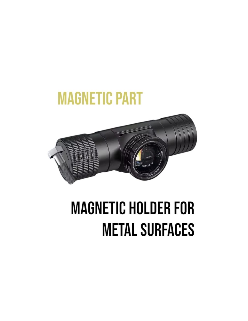 Suportul din plastic asigură o fixare sigură și confortabilă pe cap. Magnetul încorporat în lateral vă permite să atașați lanterna frontală pe suprafețe metalice - ideal pentru lucrul fără mâini.