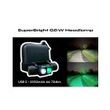 Lanternă frontală reîncărcabilă LED verde/alb - 3350mAh, 44-704lm, USB C, 50-200m, 45g, IP66, 6-58h