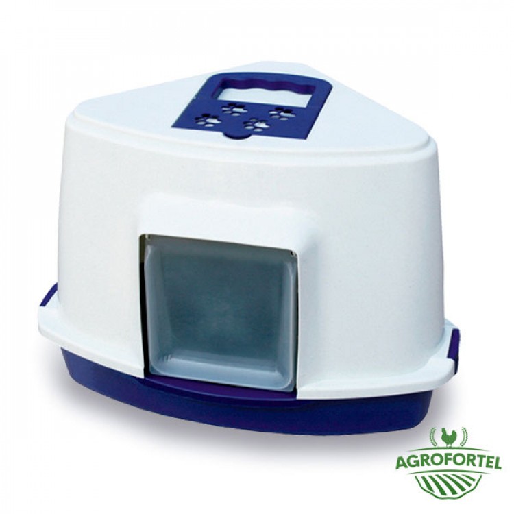 Litiera pentru pisici de la marca AGROFORTEL pentru ANIMALE DE COMPANIE , pătrată, 560 x 430 x 400 mm. Litiera este echipată cu o clapă și un filtru de miros cu carbon.