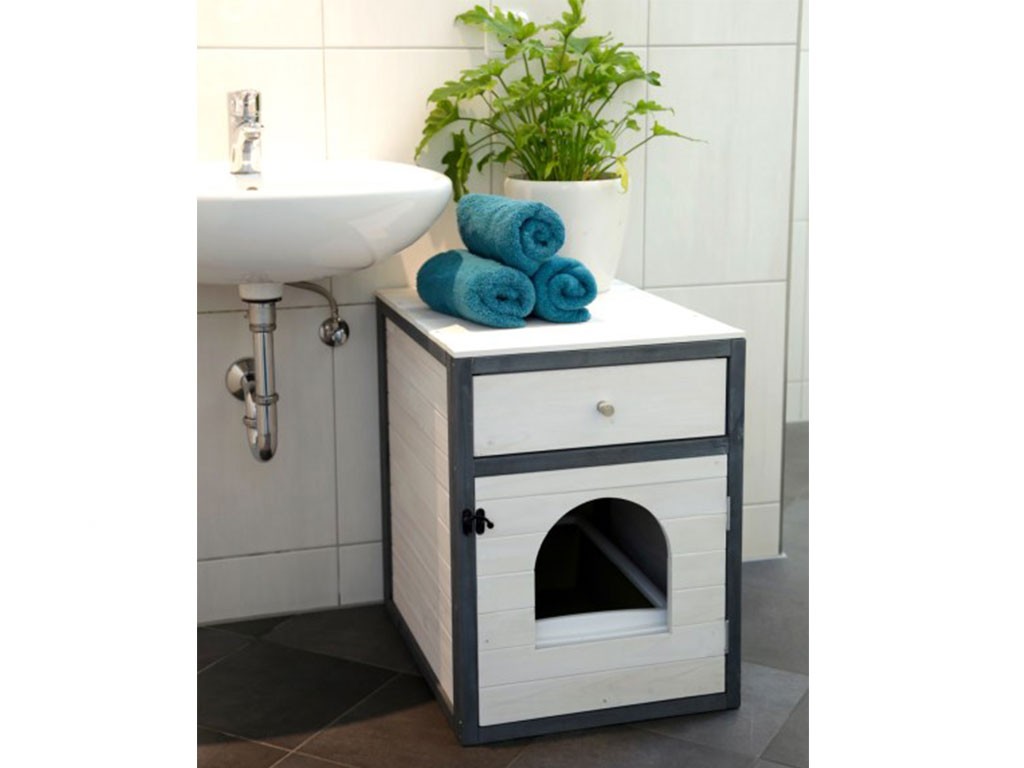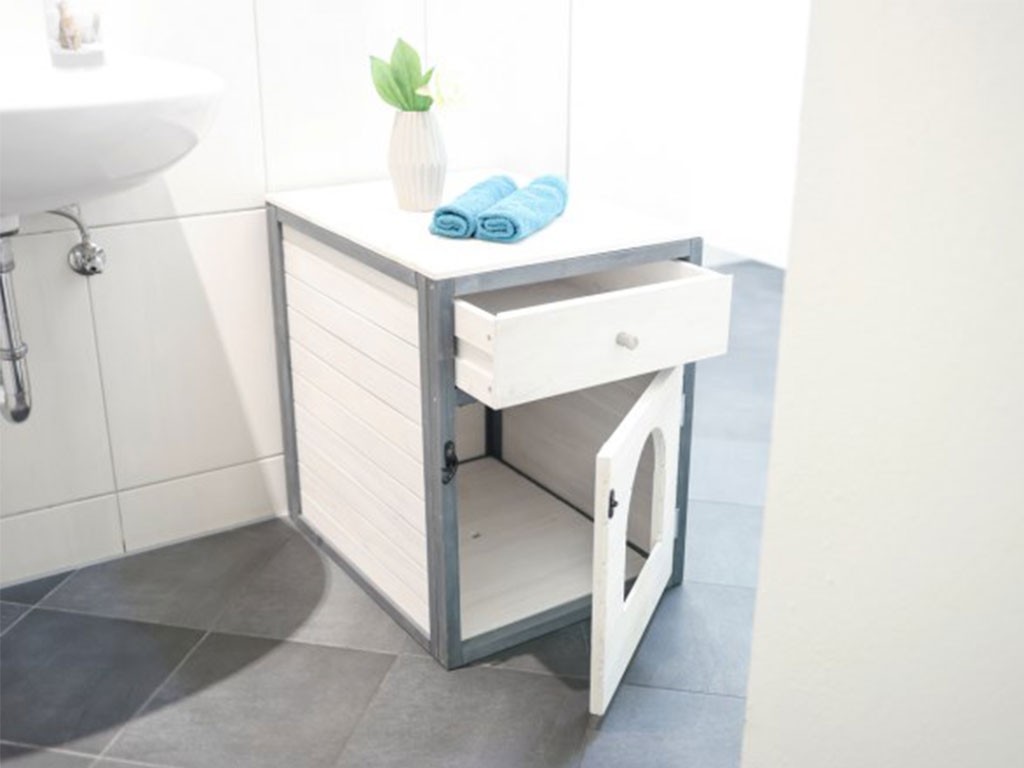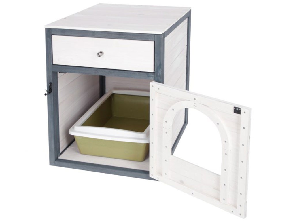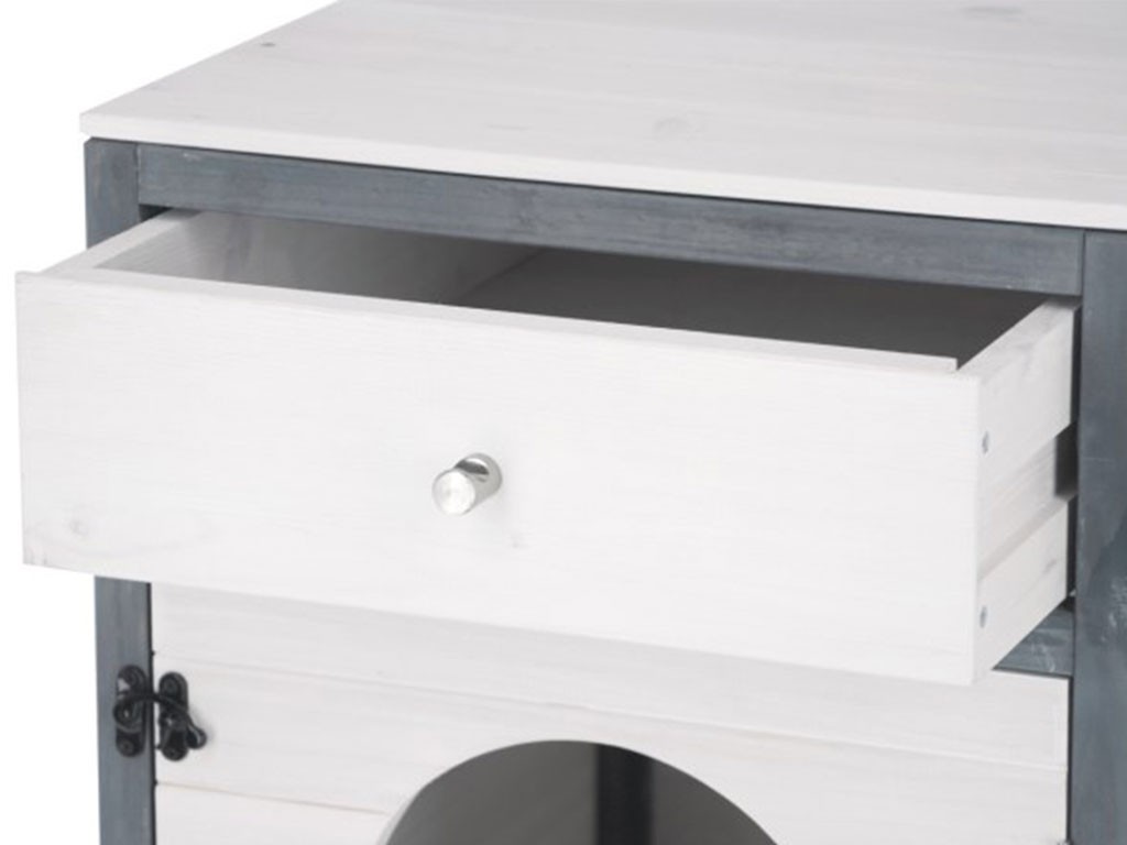 Dulap multifuncțional cu ușă și sertar practic pentru litiera pisicilor , pat pentru pisici sau pat de pisică. Aceasta este o piesă de mobilier elegantă, special concepută pentru nevoile pisicilor, având în vedere caracterul practic și designul. Acest dulap pentru pisici nu este doar un element excelent pentru interior, ci vă va ajuta să deghizați discret litiera pisicilor și să rezolvați eficient depozitarea lucrurilor în funcție de nevoile dumneavoastră.