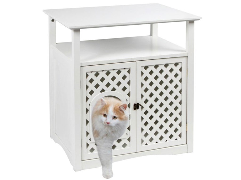 Dulap multifuncțional cu două aripi pentru toaletă, pat sau vizor pentru pisici Podea spațioasă pentru depozitare. Aceasta este o piesă de mobilier elegantă , special concepută pentru nevoile pisicilor, având în vedere caracterul practic și designul. Această cutie pentru pisici nu este doar un element excelent pentru interior, ci vă va ajuta să ascundeți discret toaleta pisicii și să rezolvați eficient depozitarea lucrurilor în funcție de nevoile dumneavoastră.