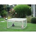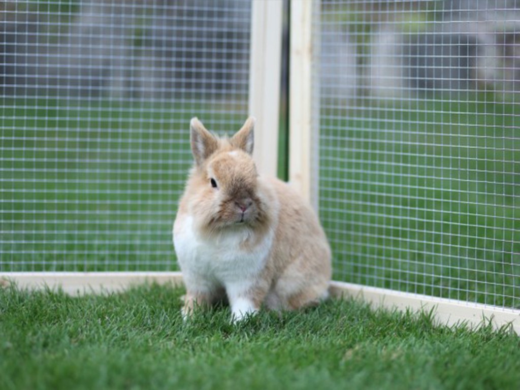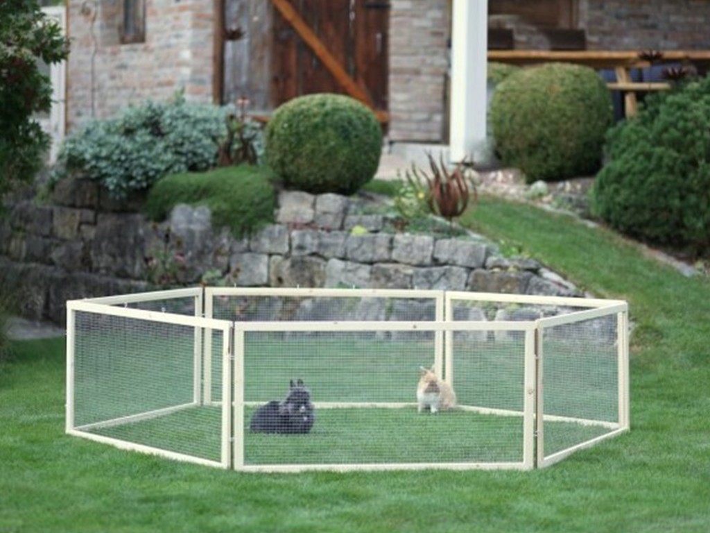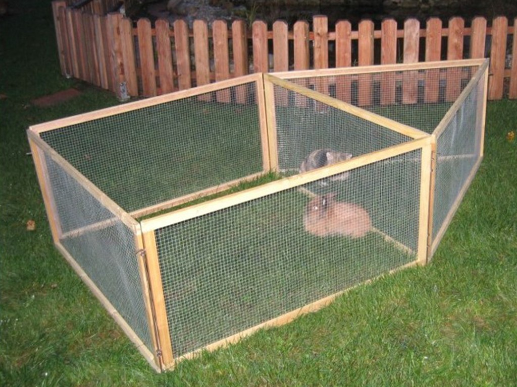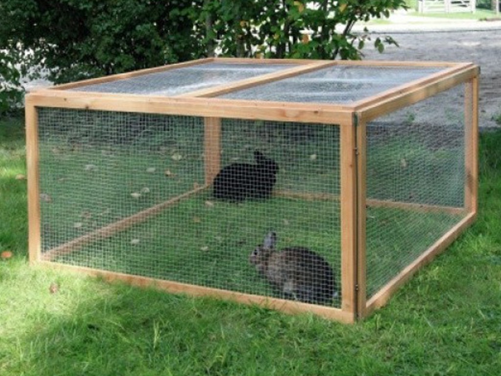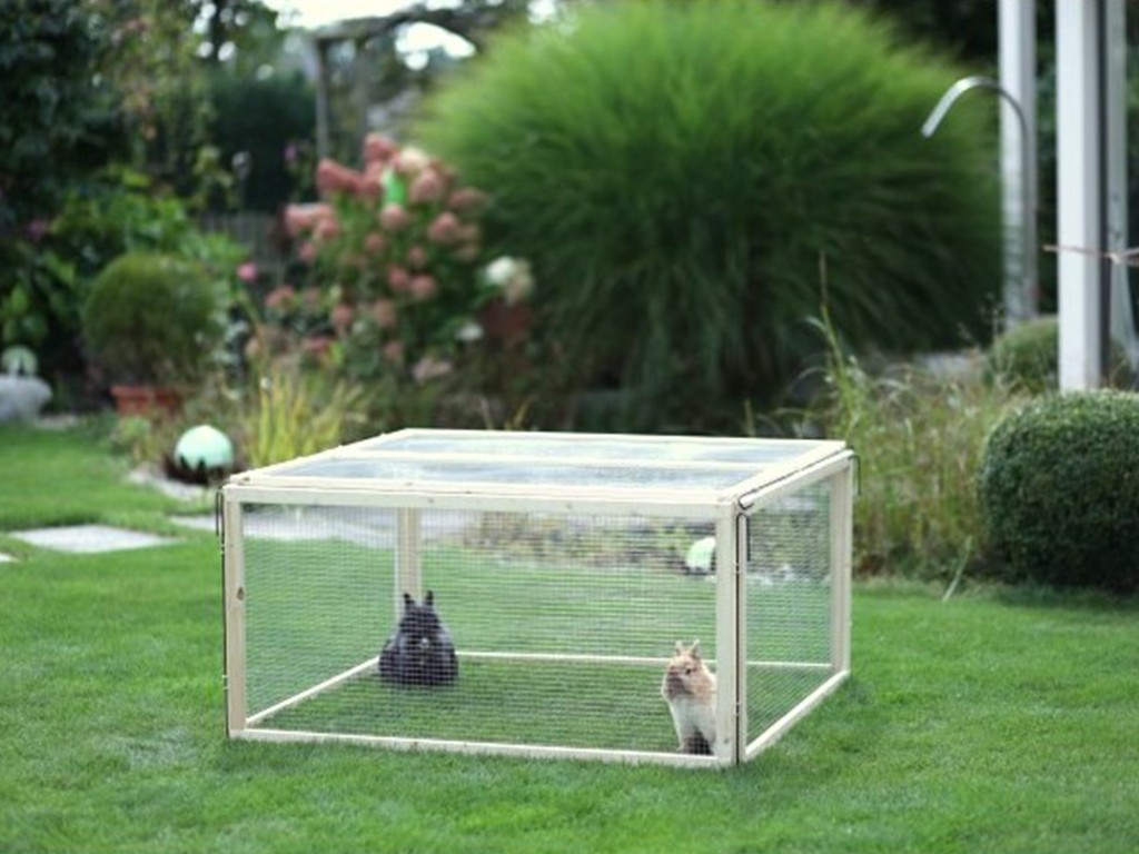 Un țarc din lemn cu plasă este potrivit pentru iepuri, cobai sau alte rozătoare.