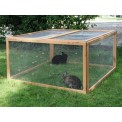 Spațiul din lemn este foarte variabil și poate fi asamblat în trei moduri diferite . Puteți crea un spațiu cu acoperiș , un spațiu cu șase laturi sau un spațiu care separă animalele (de exemplu, masculi de femele, iepuri de cobai etc.). Acest lucru vă va permite să lăsați iepurii cu urechi pe iarbă, la aer curat, fără să vă faceți griji că vor fugi . Spațiul poate fi asamblat în câteva momente folosind stâlpi înfipți în pământ. Spațiul este ușor și poate fi mutat cu ușurință, după cum este necesar.