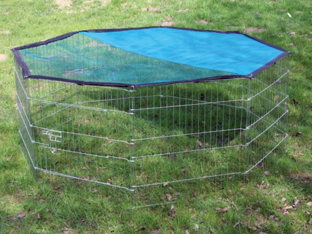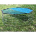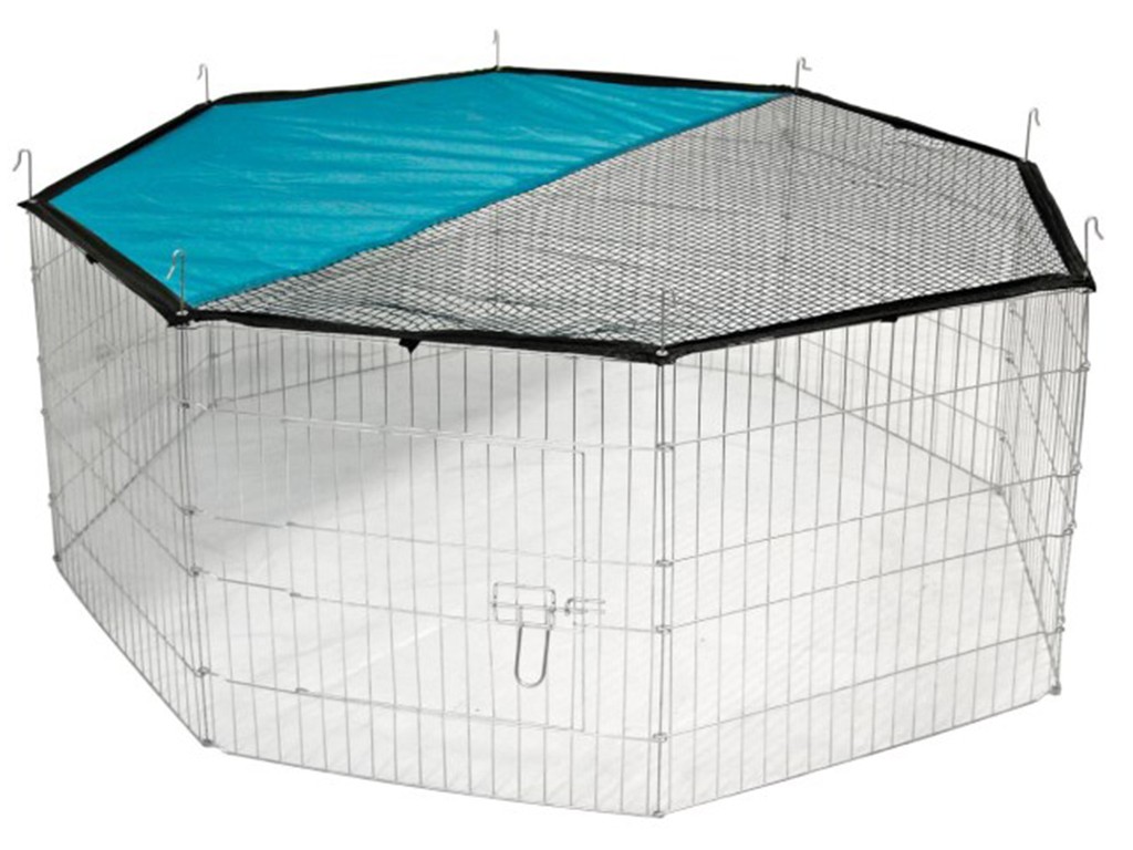 Incint pentru iepuri sau alte rozătoare , opt pereți cu dimensiuni 57 x 56 cm . Acesta este un țarc practic, cu ușă și prelată de protecție solară pentru animale mici. Puteți plia și deplia țarcul cu ușurință , țarcul fiind fabricat din metal galvanizat .