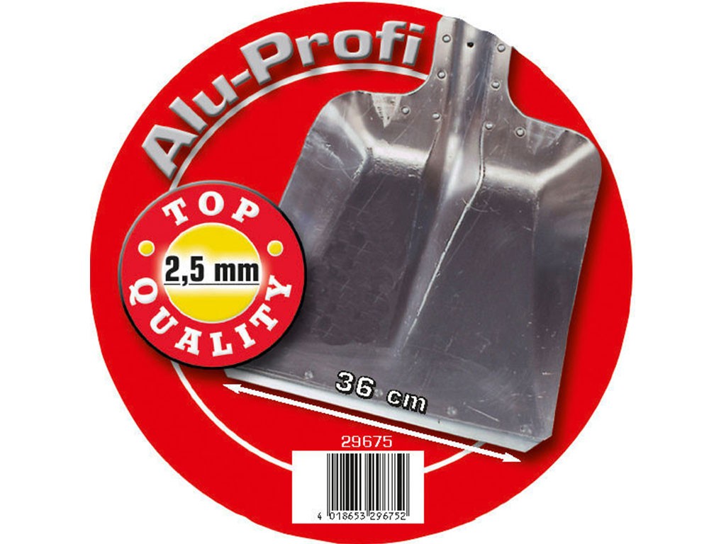 Lopată din aluminiu, cu margine galvanizată, fără mâner, diametrul carcasei 38 mm per mâner , dimensiuni (lățime) 36 cm.