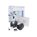 Mașină de tuns fără fir , pentru zone mici și greu accesibile, funcționare silențioasă cu vibrații minime, baterie reîncărcabilă Li-Ion 600 mAh, 90 până la 120 min per încărcare, cu 1 accesoriu reglabil (3 până la 6 mm), cap din oțel carbon, lățime de tăiere 24 mm, dimensiuni mașină 14x3x3,6 cm.