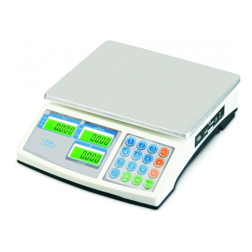 3 afișaje LCD iluminate pentru afișarea simultană a greutății totale, a greutății medii a unei piese și a numărului de piese.