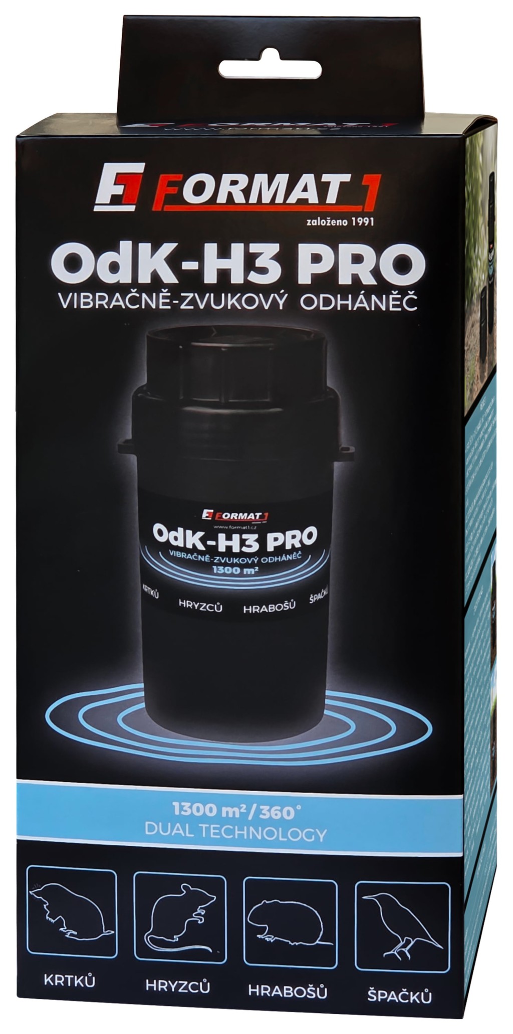 O soluție fără compromisuri pentru grădina dumneavoastră. Modelul OdK-H3 PRO reprezintă linia superioară de sperietoare de la compania de familie cehă FORMAT1 (producător tradițional din 1991). Comparativ cu modelele standard, acesta combină cele două metode eficiente de respingere: undele acustice și vibrațiile mecanice.