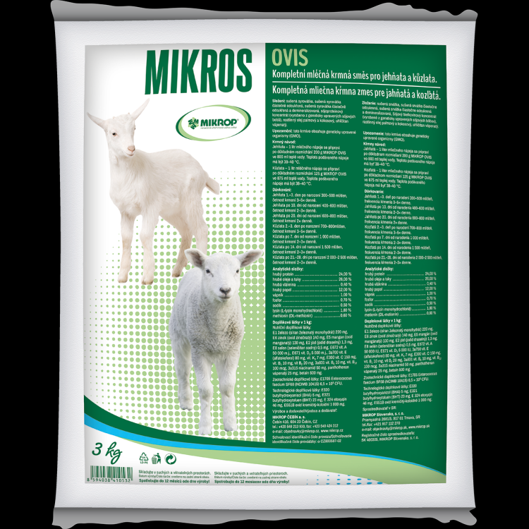 Laptele praf Mikrop Ovis, cu parametrii săi, aproximează compoziția laptelui de oaie. Folosind amestecul de furaje pentru lapte MIKROP OVIS, este posibilă o tranziție mai timpurie la amestecul de furaje pentru lapte în sistemul de dublă alăptare pe an sau triplă alăptare în 2 ani. De asemenea, este potrivit în cazul decesului unei oi care alăptează. MIKROP OVIS este o condiție prealabilă pentru intensificarea creșterii oilor.