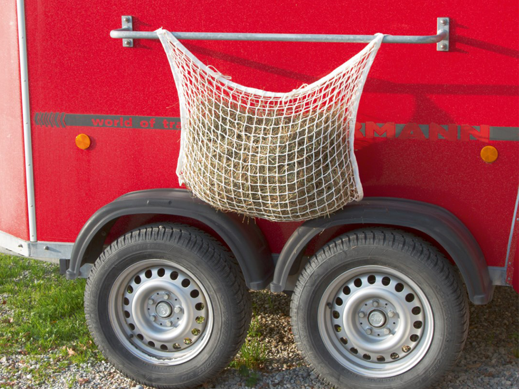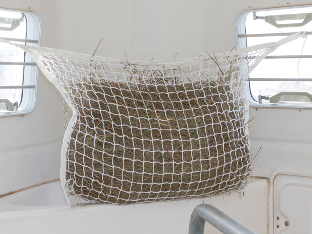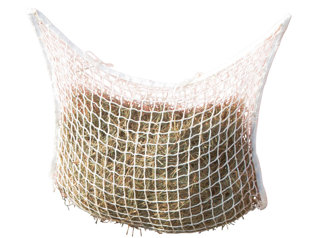 Plasă de fân , dimensiunea ochiurilor 3x3 cm , extra rezistentă la rupere , potrivită pentru ponei și remorci, ajută la hrănirea corectă, reduce cu până la 30% risipa de furaje , capacitate 4 kg, dimensiuni 90x60 cm .