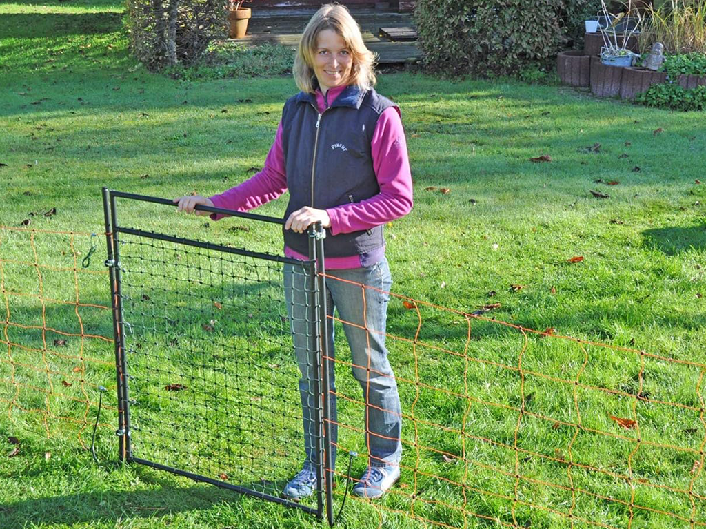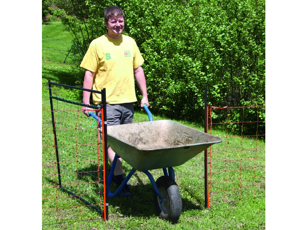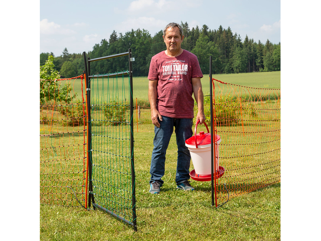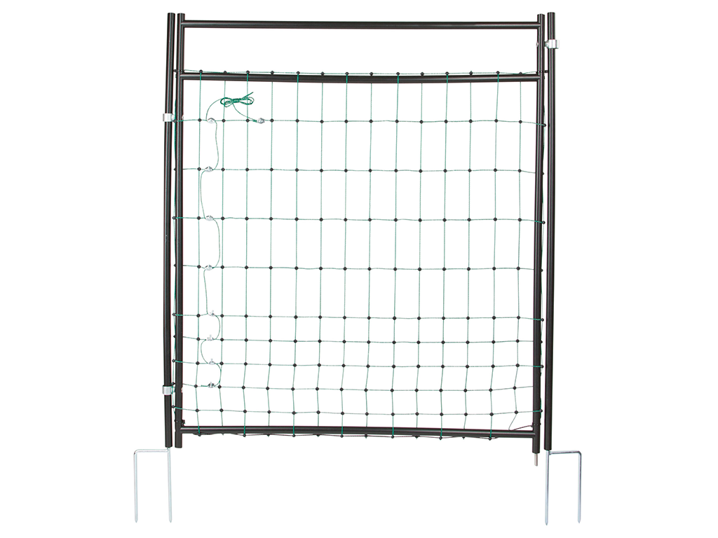 Poartă din plasă pentru garduri electrice cu o înălțime de 106 cm , potrivită pentru toate plasele cu o înălțime de până la 106 cm . Poarta permite trecerea rapidă, ușoară și sigură în gard. Rama este izolată și nu este necesară deconectarea porții de la gard la deschiderea și închiderea acesteia.