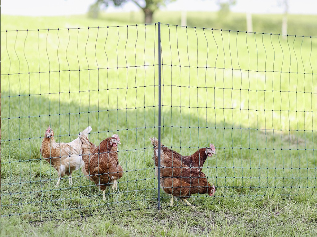 Datorită dimensiunii deosebit de mici a ochiurilor de la bază, această plasă extra-rezistentă este potrivită în special pentru găini sau miei.