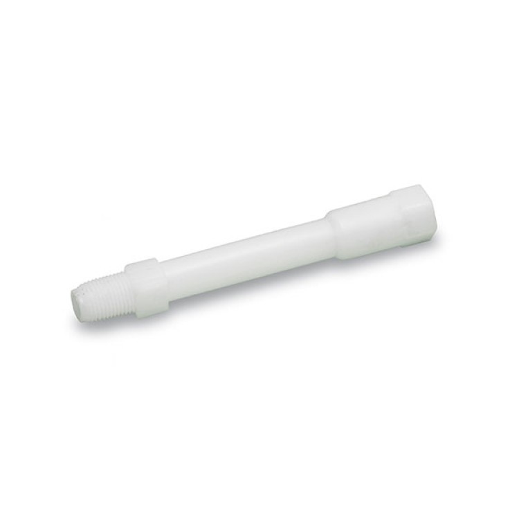 Prelungire dreaptă pentru tetină din oțel inoxidabil pentru iepuri, păsări de curte, găini, prepelițe - cotul din plastic către tetină se termină cu un filet interior M10x1 mm, în care se înșurubează tetina, iar pe cealaltă parte cu un filet exterior, care se înșurubează în rezervor. Lungime 90 mm.