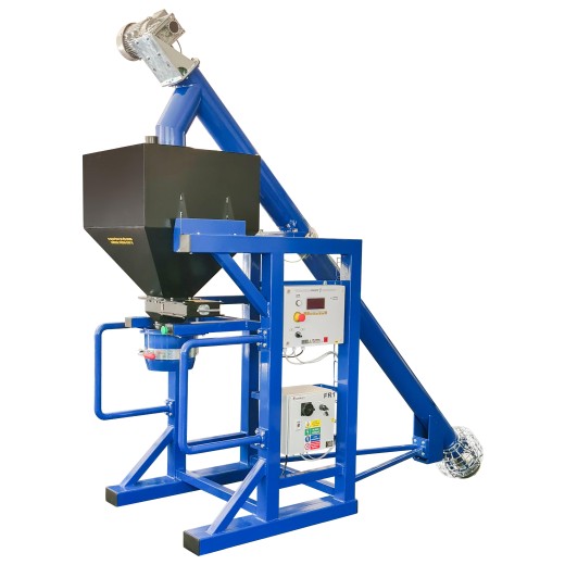 Capătul melcului se scufundă în grămada de materie primă, care este colectată de melc în buncărul superior cântărit în timpul însacuirii.