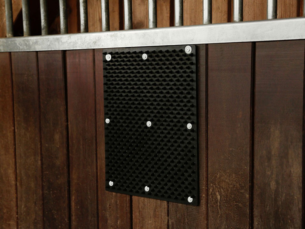 Racletă de perete din cauciuc , potrivită pentru viței și bovine tinere, pentru perete, în jurul stâlpilor sau colțurilor, fabricată din cauciuc natural flexibil, îngrijire delicată pentru blană și piele, găuri de montare, dimensiuni 40x30 cm.