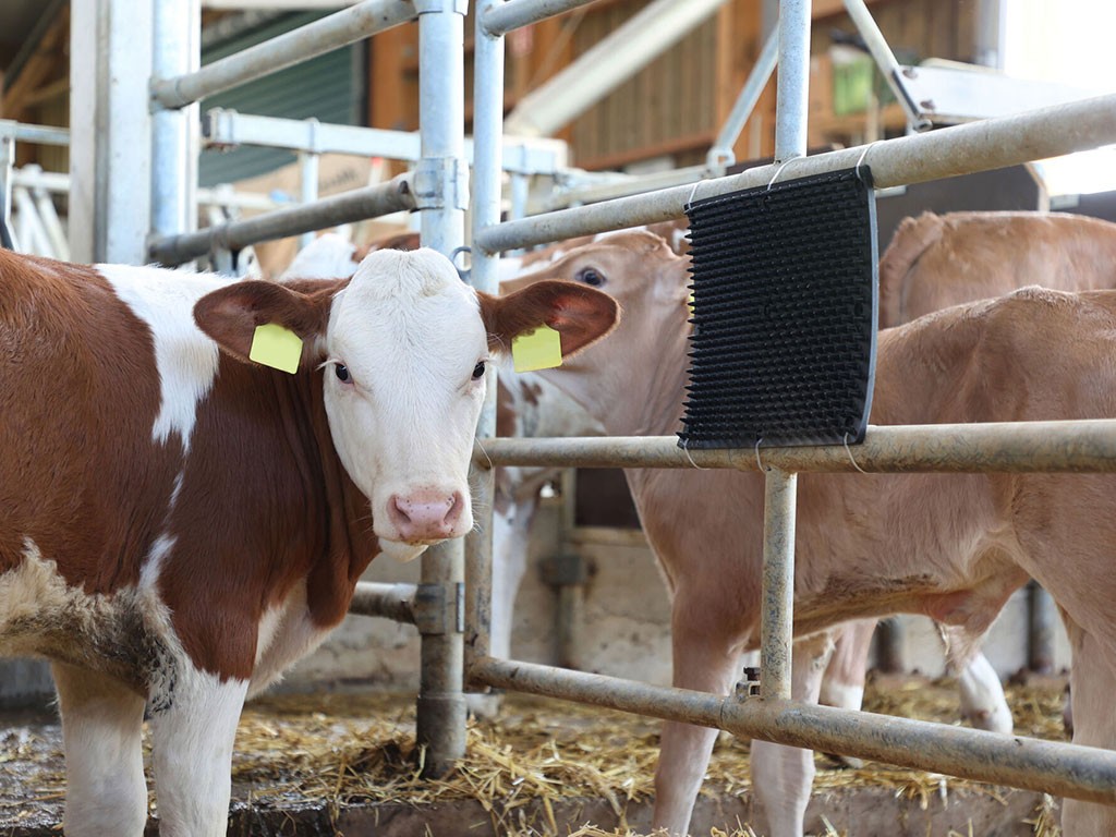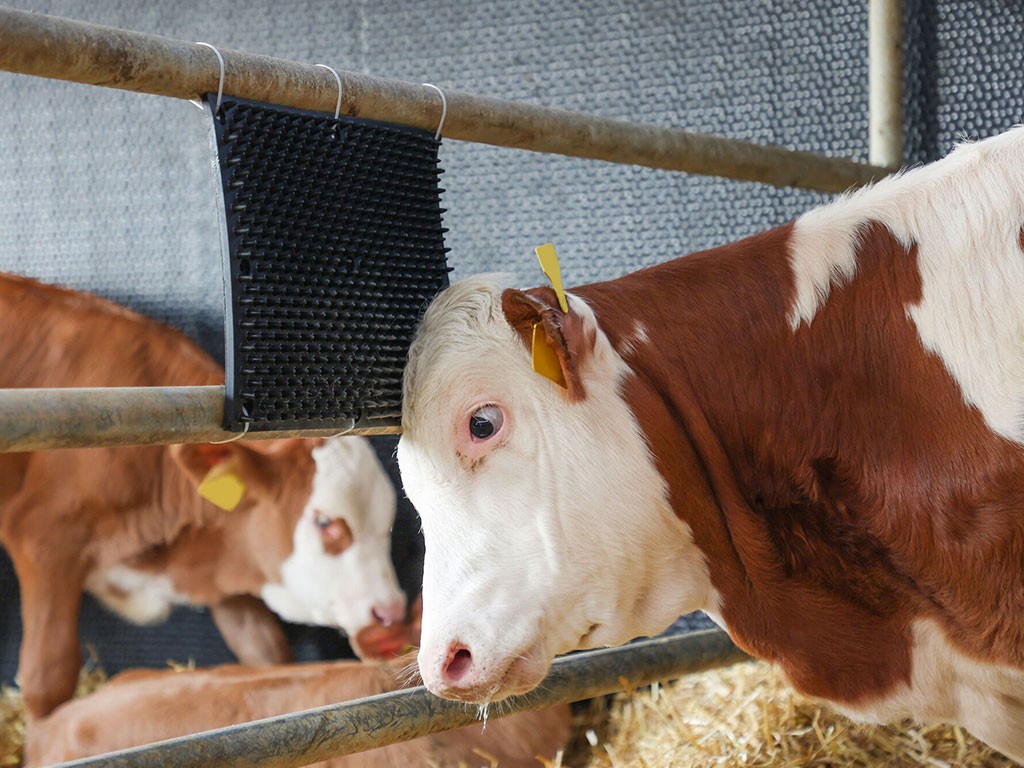 O racletă de cauciuc cu proeminențe moi și flexibile este potrivită pentru animalele cu pielea sensibilă, cum ar fi vițeii și animalele tinere sau caii.