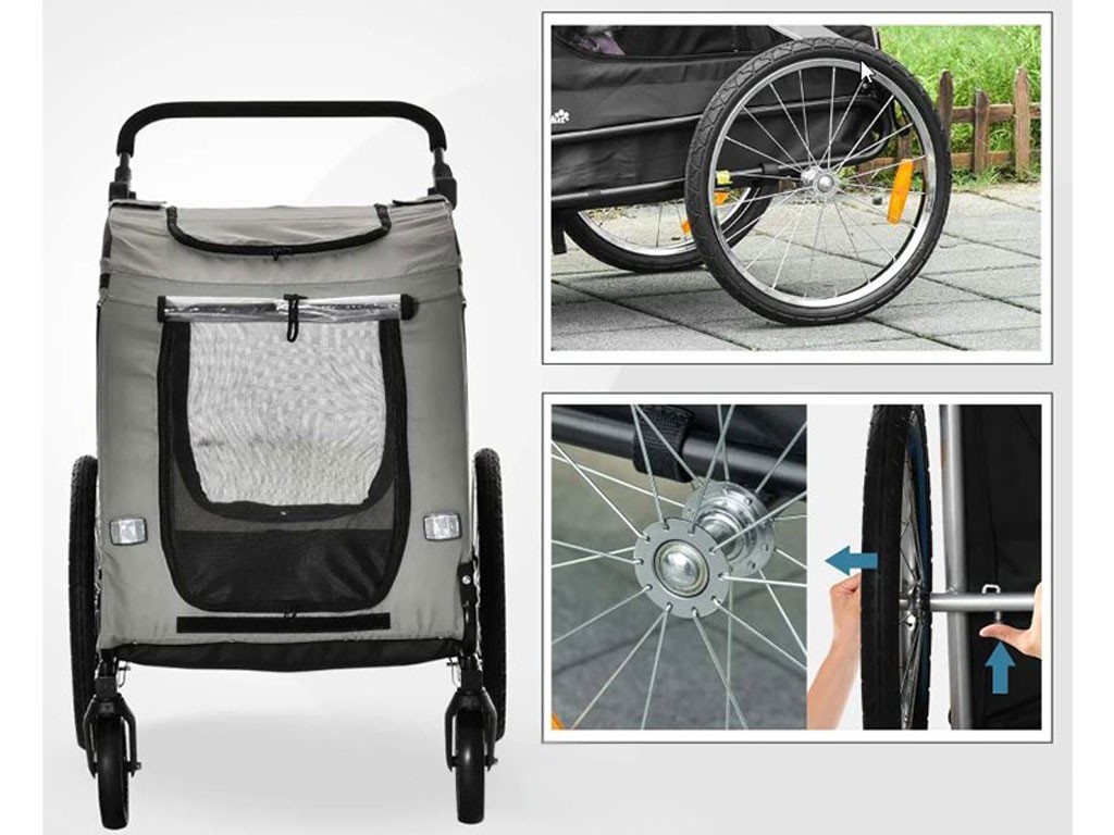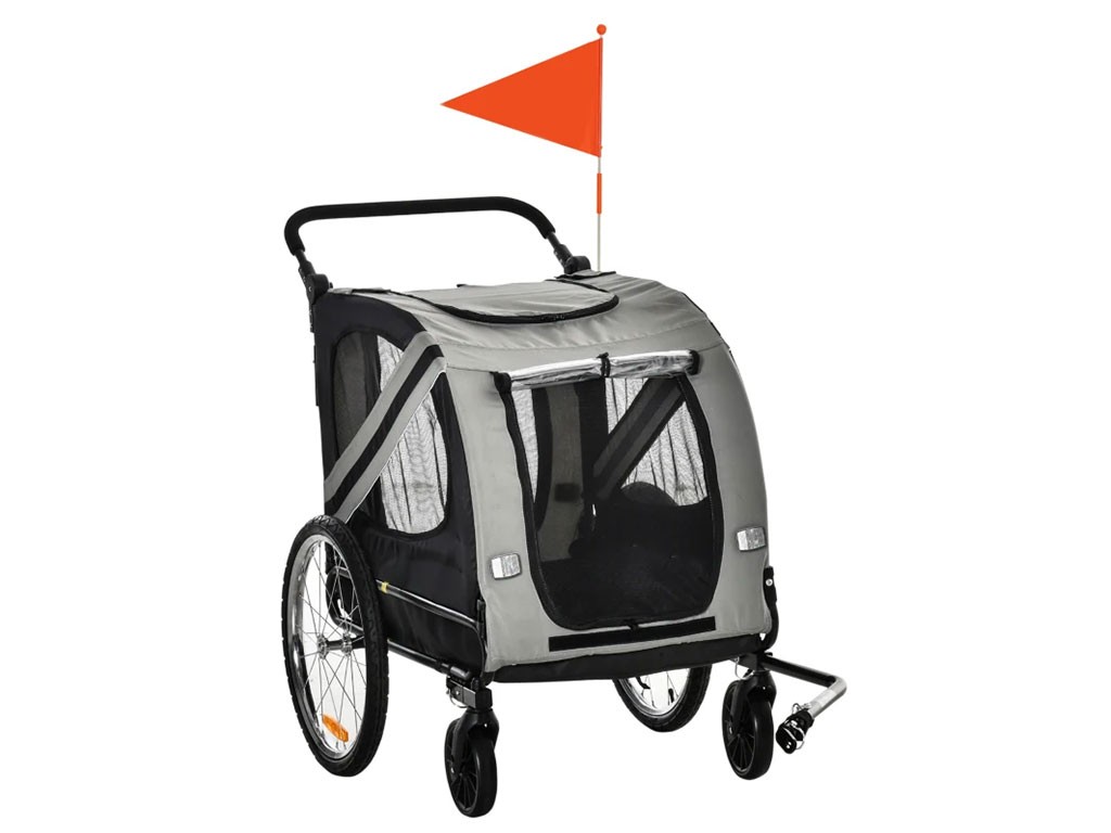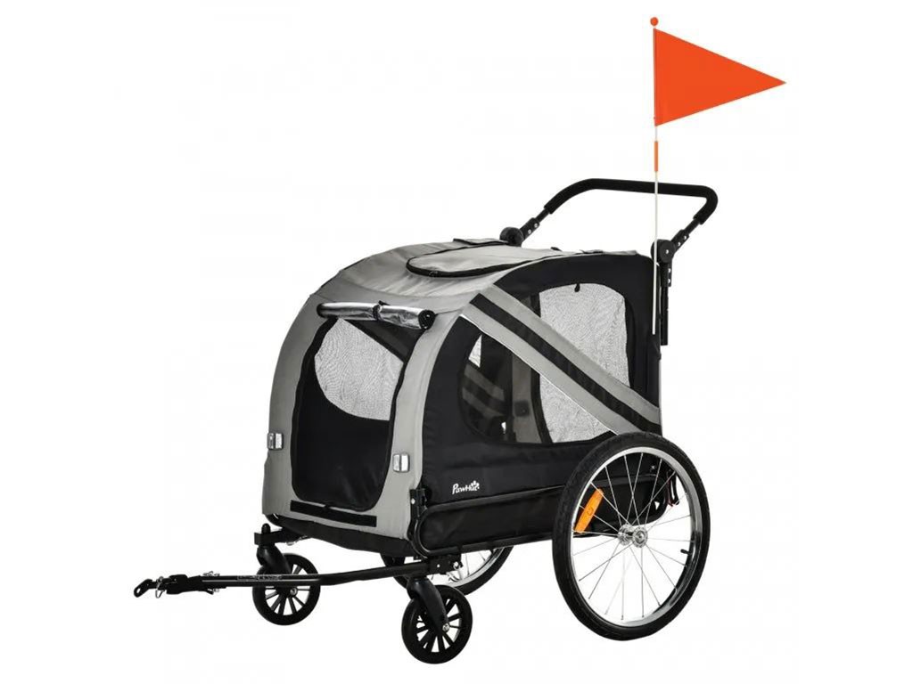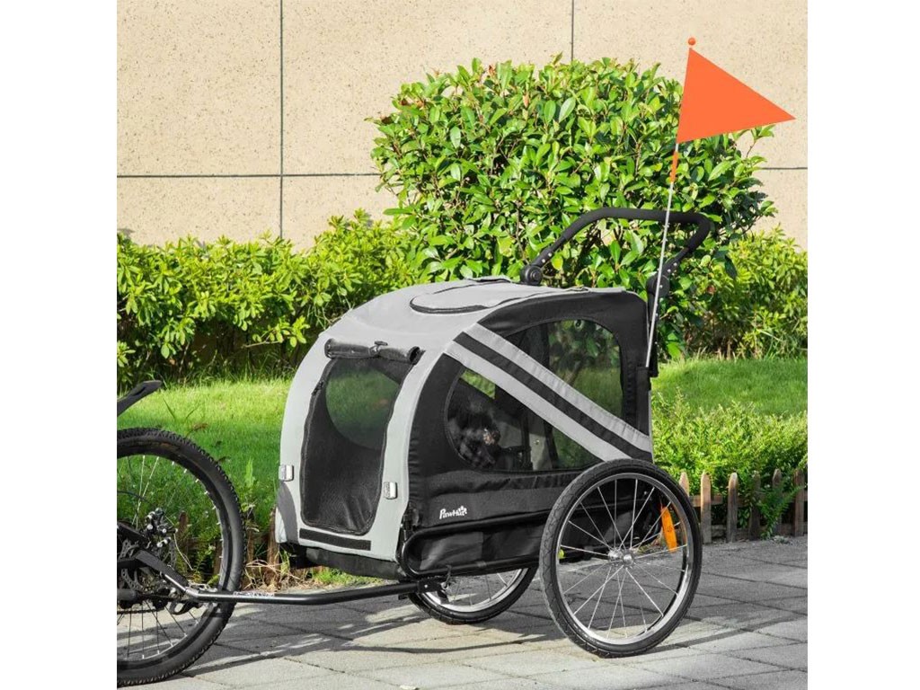 Remorcă de bicicletă 2 în 1 pentru câini PAWHUT D00-144GY, gri