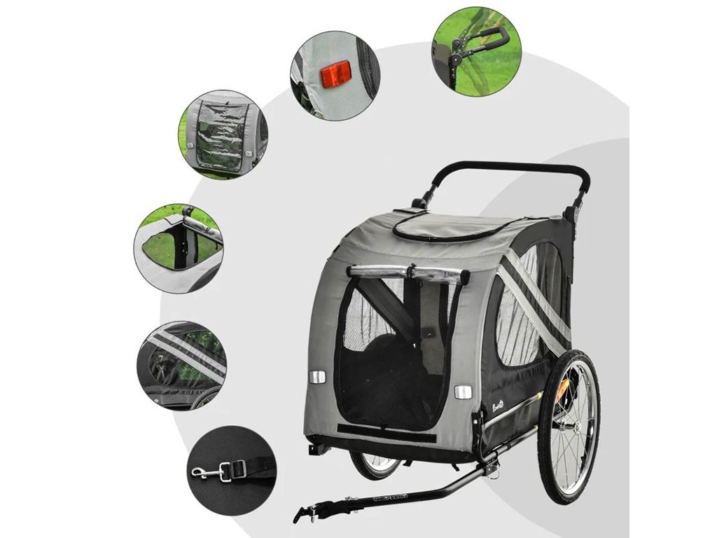 Remorcă pentru bicicletă 2 în 1 pentru câini PAWHUT D00-144GY, D00-144RD