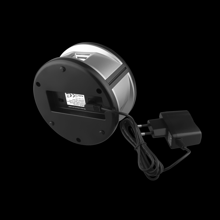 Dispozitivul se alimentează prin intermediul unui adaptor de 9V , inclus în pachet.