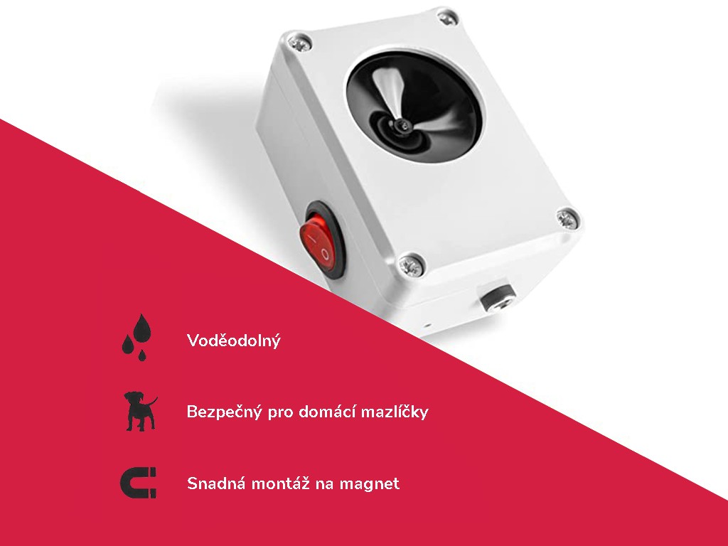 Repelent cu ultrasunete pentru jderi, potrivit pentru sperierea jderilor și rozătoarelor , sigur pentru oameni și animale de companie. Pentru utilizare în interior și exterior , echipat cu o husă impermeabilă durabilă, cu posibilitatea de atașare prin intermediul unui suport magnetic . Repelent de jder cu o gamă de tonuri de 180° , cu schimbare automată a frecvenței și o rază de acțiune de până la 1500 m2 , alimentat de un adaptor de 6V . Repelentul de jder folosește 1 difuzor cu diafragmă de 50 mm , dimensiunile repelentului cu ultrasunete sunt 60x85x55mm.