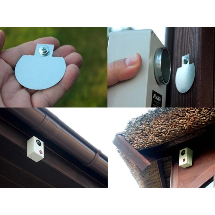 Datorită suportului magnetic puternic, repelentul cu ultrasunete Dragon poate fi atașat pe orice suprafață metalică fără a fi nevoie de asamblare complexă, cum ar fi țevi, balustrade, pervazuri, jgheaburi, structuri de acoperiș sau încălzire. Dacă nu există o suprafață metalică la locul de instalare, puteți utiliza pandantivul metalic inclus în pachet. Acest pandantiv se înșurubează în locația dorită, unde puteți apoi atașa pur și simplu dispozitivul.