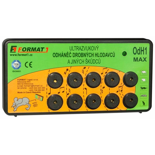 Repelent electronic cu ultrasunete pentru șoareci, jder, șobolani, nevăstuică și ursuleți. Acesta este un produs pur cehesc cu o lungă tradiție pe piață (din 1991), fabricat direct în compania noastră FORMAT1 spol. s ro. Fiabil, puternic, dovedit de mulți clienți de peste 29 de ani. Repelentul pentru jder este inofensiv atât pentru oameni, cât și pentru animalele domestice.Repelentul creează un mediu sonor neplăcut pentru dăunători (în raza sunetului audibil și a ultrasunetelor), aceștia părăsind treptat zona protejată. Prin urmare, repelentul este complet uman, nu ucide animalele, nu le face rău, ci doar le face șederea în zona protejată inconfortabilă, adică îi alungă. Nu folosește aditivi chimici.