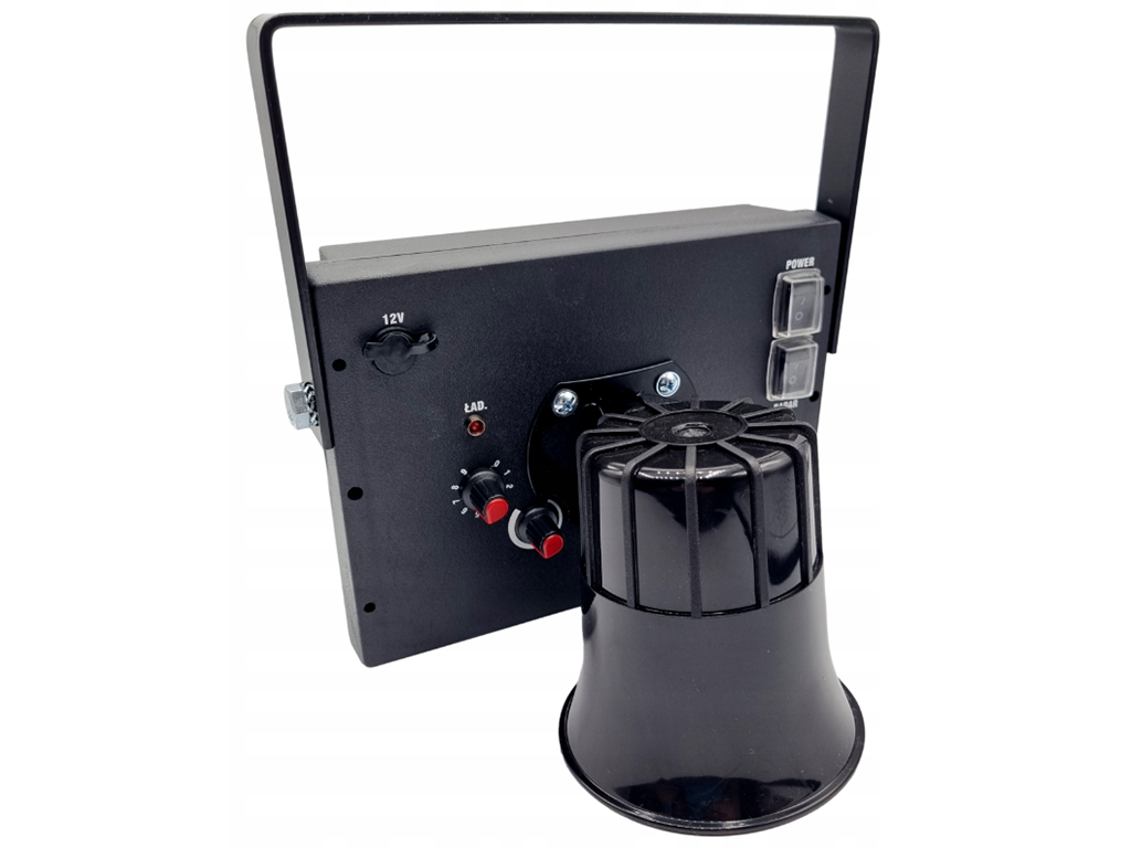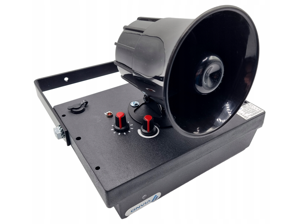 Repelent sonor pentru păsări , alimentat de un adaptor de 12V , potrivit pentru alungarea graurilor, vrăbiilor etc., protecție IP54 - impermeabil, antipraf, pentru spații exterioare, livezi, podgorii, 1 difuzor cu membrană, cu o rază de acțiune de până la 6000m2, durată semnal sonor 38s, volum reglabil, intervale de alungare reglabile, cu radar de mișcare PIR, detectează mișcarea până la 12m, unghi de detecție radar 360°, senzor crepuscular, consum redus 26mA, cu întrerupătoare protejate, pentru montare cu șuruburi prin suport, dimensiuni 225x160mm.