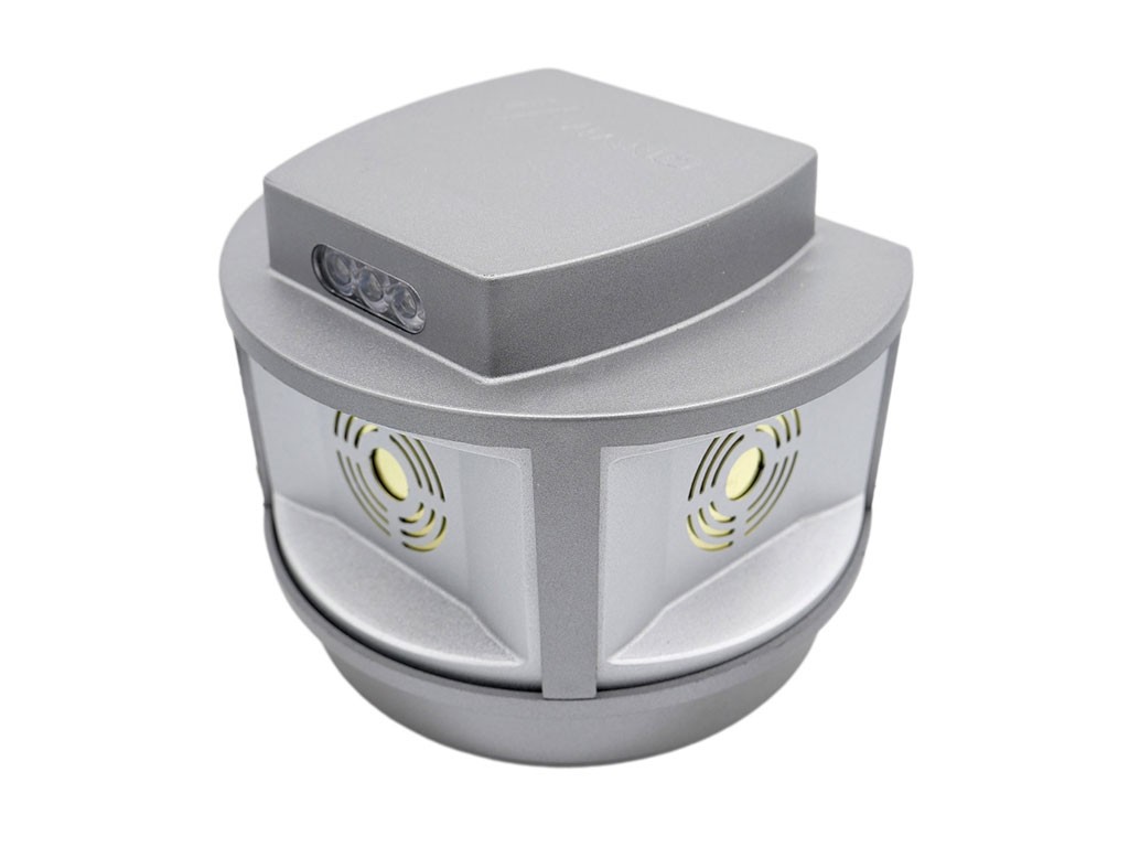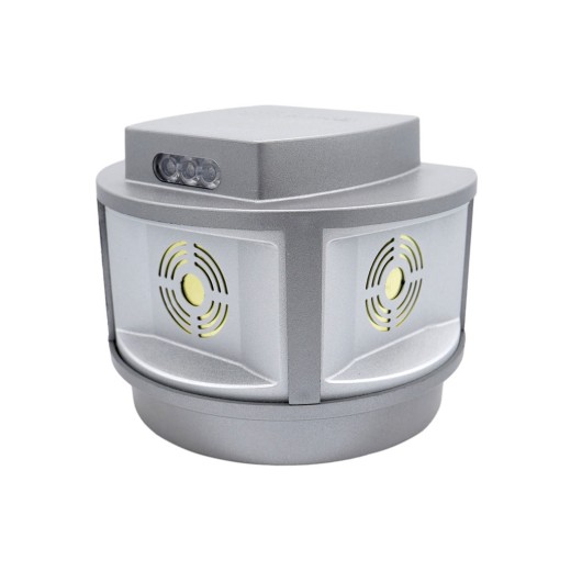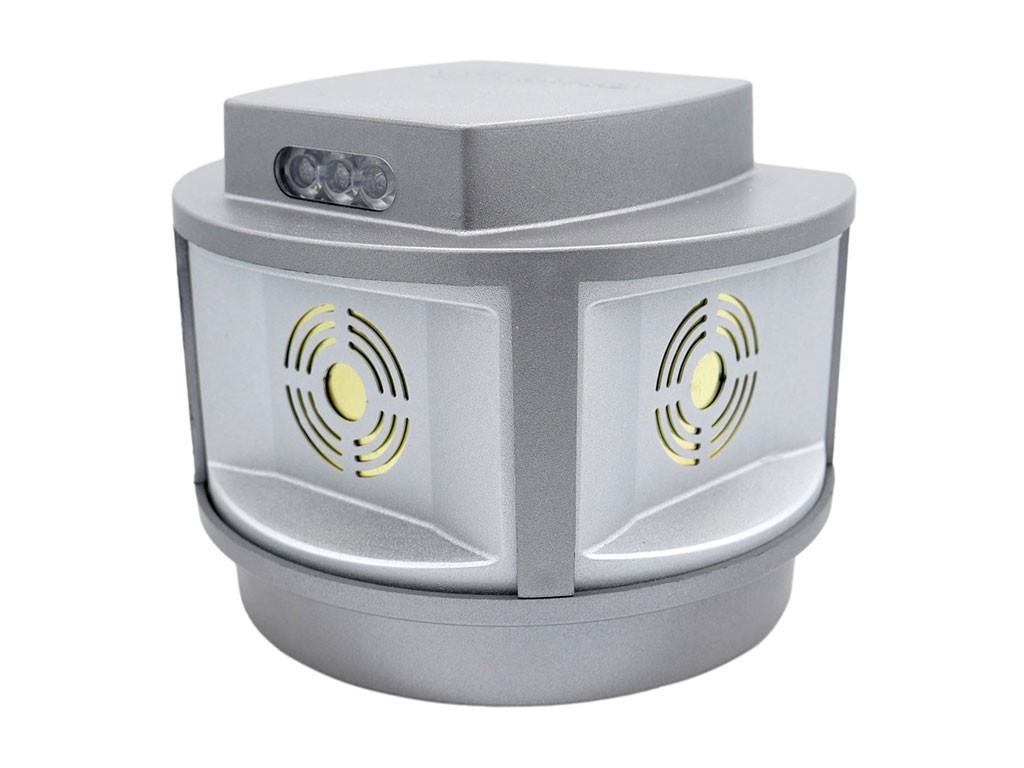 Repelent cu ultrasunete pentru animale , două baterii reîncărcabile Li-Ion de 4000 mAh, durată de viață a bateriei de până la 200 de zile, cu încărcare prin adaptor de 12V, potrivit pentru sperierea jderilor și rozătoarelor, carcasă IP44 - impermeabilă, etanșă la praf, pentru utilizare în interior și exterior, 3 x lumină LED stroboscopică, declanșată la detectarea mișcării, 3 difuzoare piezoelectrice de 50 mm, cu schimbare automată a frecvenței, cu o gamă de ton de 270°, cu o rază de acțiune de până la 3000 m2, consum redus 20 mA, consum de lumină LED 5 mA, cu întrerupătoare protejate, pentru fixare prin magnet, dimensiuni 115x95x94 mm.