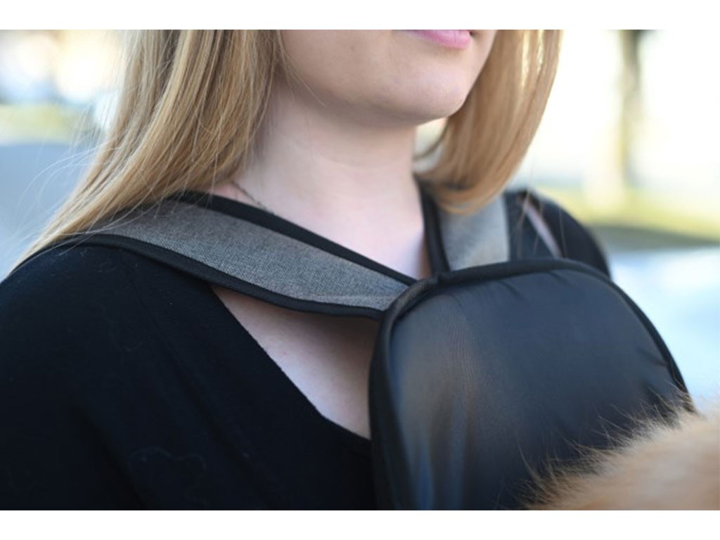 Rucsacul te va uimi cu echipamentul și designul său deosebit. Bretelele căptușite pot fi ajustate pentru o transportare ușoară în față, care va fi și confortabilă datorită spatelui întărit al rucsacului . În plus, poți fixa bretelele de umăr cu o curea reglabilă la talie. Pentru a-ți menține animalul de companie în siguranță în timpul călătoriilor, îl poți atașa la o lesă scurtă și poți trage de șnur în jurul capului pe deschiderea superioară, astfel încât animalul tău de companie va fi în siguranță și va avea o vedere excelentă din rucsac . Inserțiile laterale din plasă asigură o circulație optimă a aerului. Există un compartiment de depozitare în partea din față a rucsacului unde poți depozita recompense sau o lesă. Dacă nu călătorești nicăieri cu câinele tău, poți depozita cu ușurință rucsacul .
