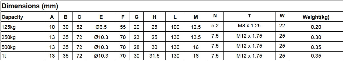 Capacitate de încărcare de la 125 kg la 1000 kg