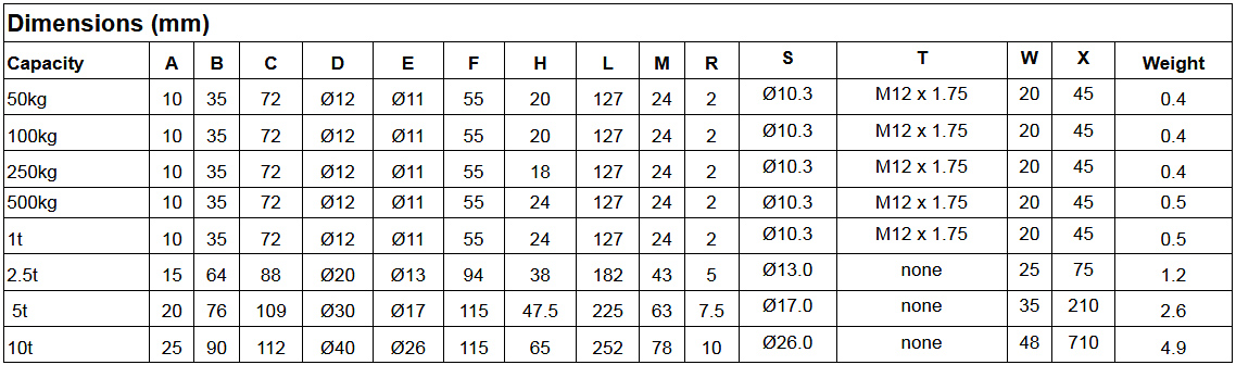 Capacitate de încărcare de la 50 kg la 10.000 kg