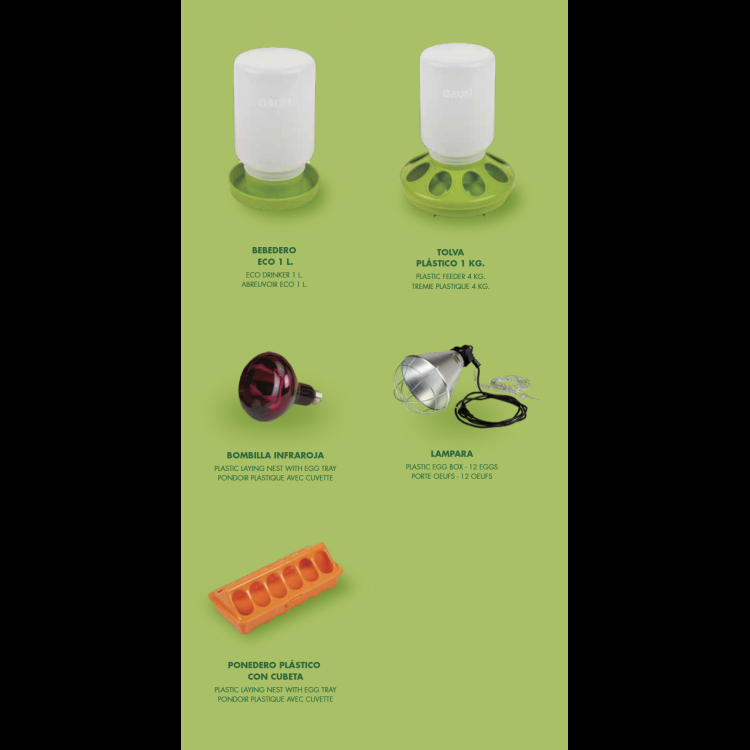 Set de bază pentru creșterea păsărilor de curte - hrănitor, adăpător, lampă, bec