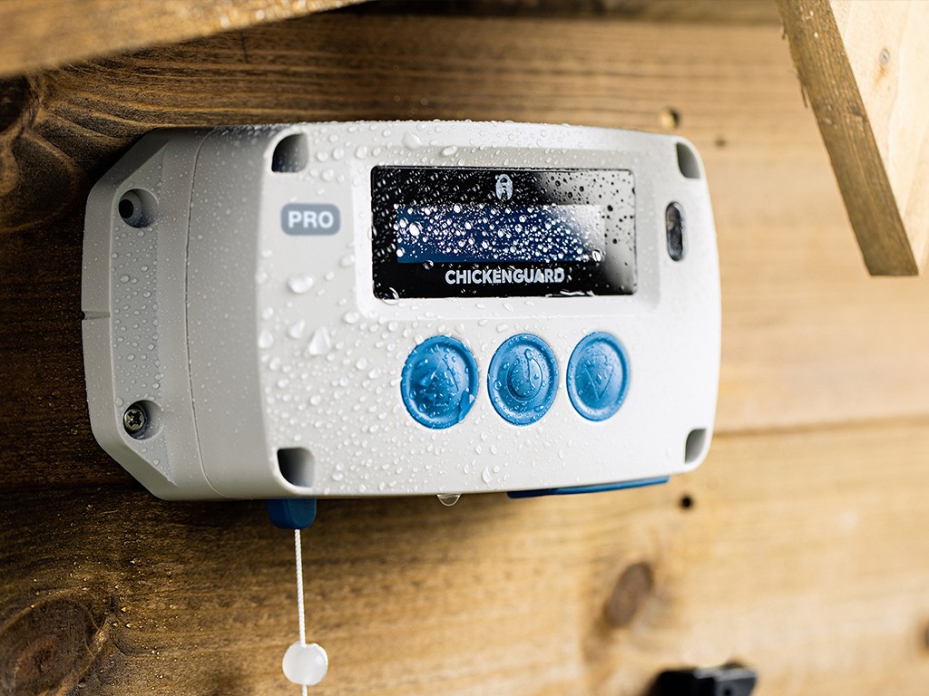 Chicken Guard Pro are un motor foarte puternic , care poate ridica până la 2 kg . Dispozitivul include și un senzor de poziție a ușii fără contact. Dispozitivul este echipat cu o carcasă foarte durabilă , asigurând astfel o protecție perfectă în condiții meteorologice extreme de până la -20°C. Toate informațiile necesare despre setări sunt afișate clar. pe afișajul LCD cu două linii . Afișajul LCD intră în „modul repaus” după o anumită perioadă de inactivitate pentru a crește durata de viață a afișajului. Puteți „trezi” din nou dispozitivul apăsând butonul MENU. Butoanele extra-mari sunt utilizate pentru setarea programelor , astfel încât acestea să poată fi operate chiar și cu mănuși.
