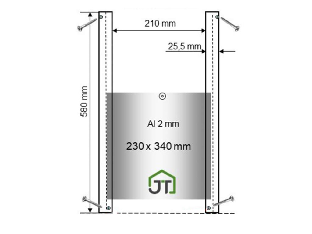 Dimensiunile întregului sistem de închidere, inclusiv glisoarele, sunt de 26x58 cm . Dimensiunile ușilor individuale sunt de 23x34 cm . Aceste uși sunt ideale pentru găini sau rațe mai mici.