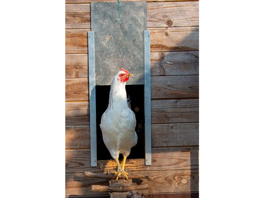 Deschiderea și închiderea automată a cotețului de găini cu o ușă de 23x34 cm . Acesta este un sistem complet de control automat al mișcării ușii, cu senzor de lumină , temporizator și funcție de deschidere de urgență a ușii. Ecranul LCD integrat asigură setarea și modificarea ușoară a temporizării, dacă este necesar. Potrivit pentru temperaturi de până la -30°C .