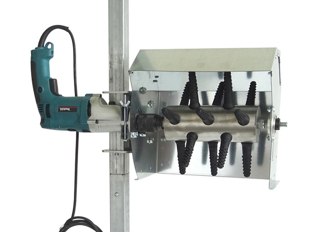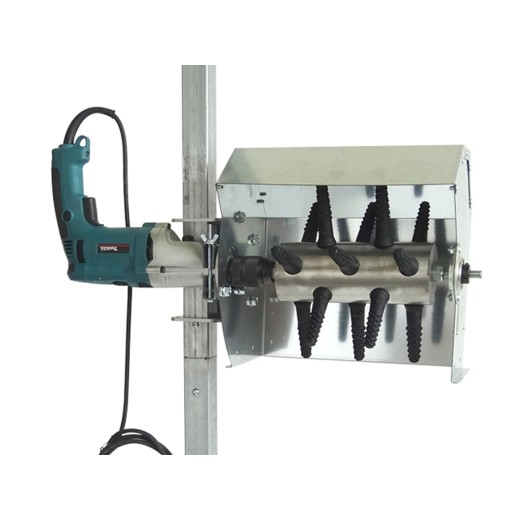 Mașină de smuls penele potrivită pentru păsări de curte de dimensiuni medii și mari . Echipată cu 15 degete de smuls cu o lungime a degetelor de 87 mm . Cu un capac protector din oțel inoxidabil care limitează împrăștierea penelor în timpul smulgerii. Capacul este echipat cu un atașament de înaltă calitate pentru toate tipurile comune de burghie și un suport cu posibilitatea de a regla înălțimea optimă de smulgere.