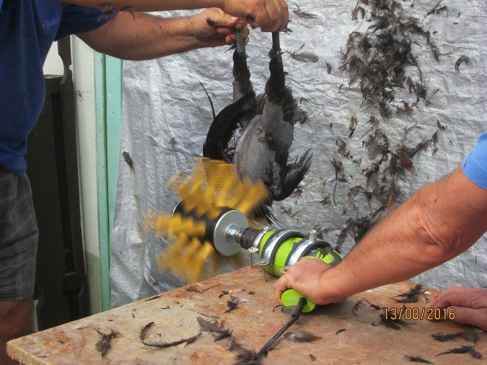 Se recomandă să țineți păsările de curte de dimensiuni medii (de exemplu, găini, rațe) de picioare și să le coborâți de-a lungul rolei rotative , în timp ce păsările de curte mai mari (de exemplu, gâște, curcani) trebuie așezate pe smulgător , iar partea pe care doriți să o smulgeți trebuie rostogolită peste rolă . Pentru mai multă inspirație, vizionați videoclipurile de mai jos.