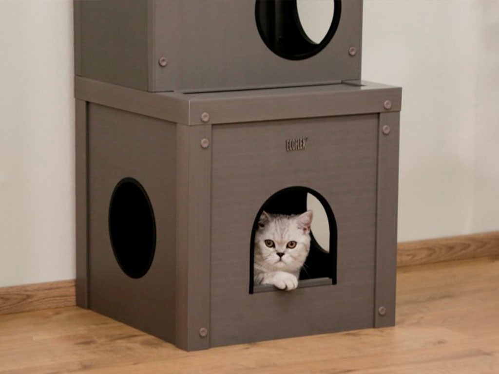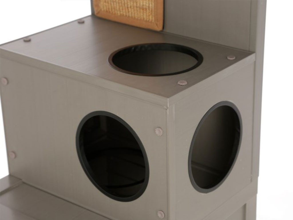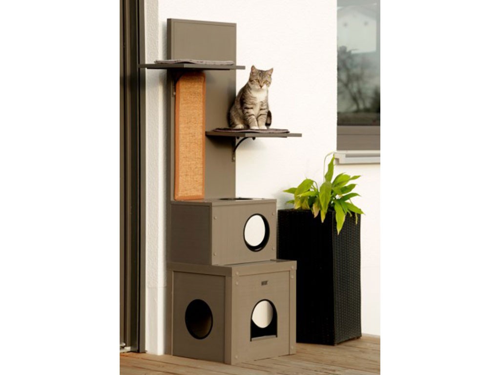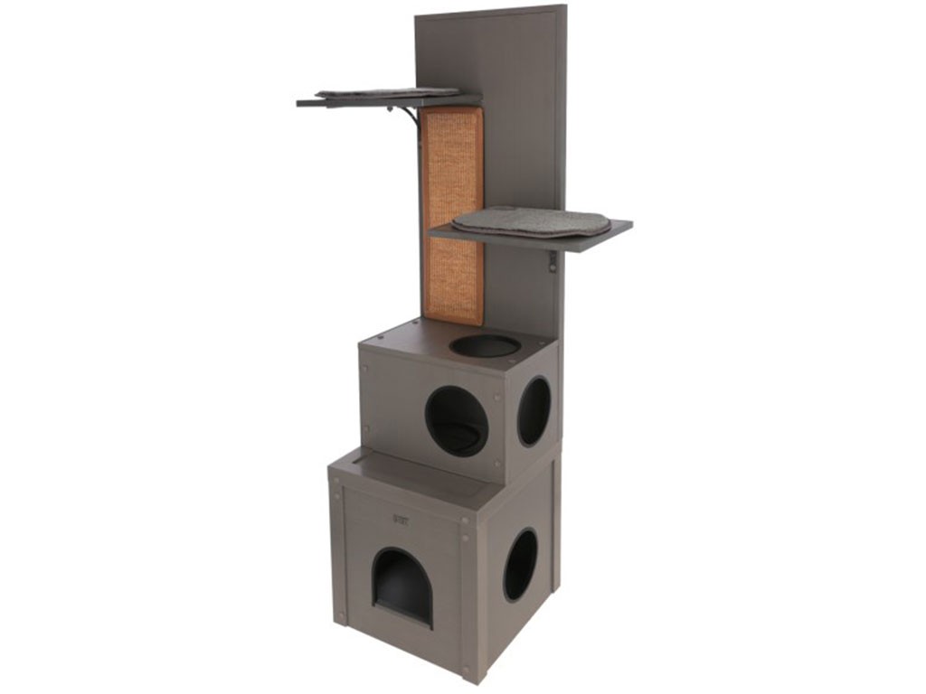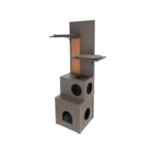 Stâlp de zgâriat mare ALEX 3 în 1, fabricat din plastic ecologic sustenabil , într-un design gri elegant , pentru utilizare în interior și exterior. Această căsuță luxoasă pentru pisici are două ascunzători mari, două șezlonguri, o suprafață mare de zgâriat și șapte găuri pentru a se târâ. Datorită dimensiunii , aspectului și materialului care nu necesită întreținere , este de neegalat printre cele mai mari senzații feline de pe piață.
