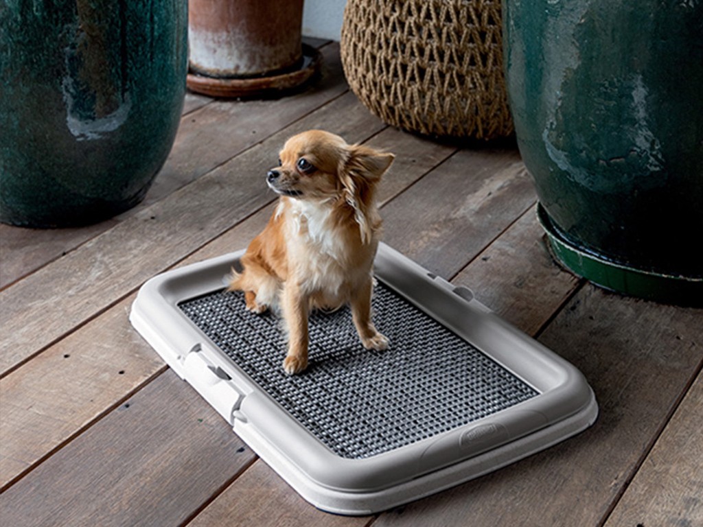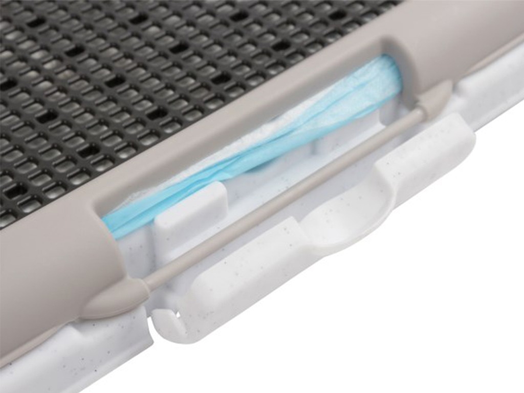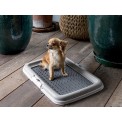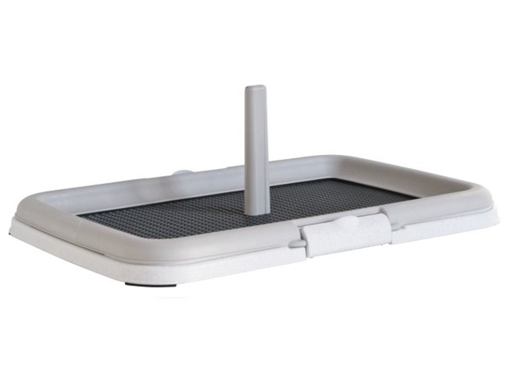Toaleta este special concepută pentru confort maxim atât pentru câini, cât și pentru stăpâni. Grătarul inovator menține labele uscate, deoarece lichidul pătrunde imediat în covoraș. Acest lucru vă va scuti de grija spălării amprentelor și vă va menține casa și zona toaletei curate.
