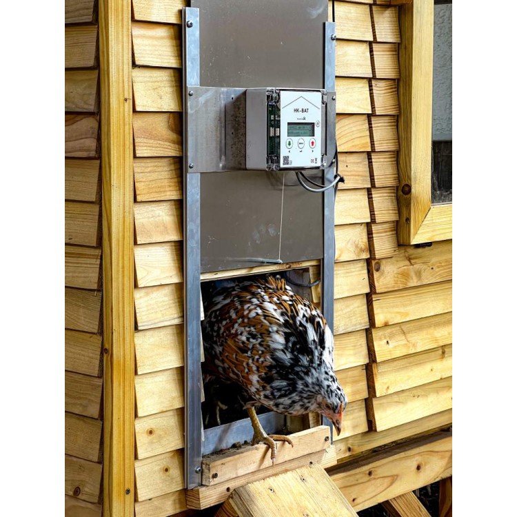 Ușă de siguranță pentru coteț de găini cu clapă anti-retur - 230x340 / 300x450 / 340x550 mm - fără unitate de control HK-Bat