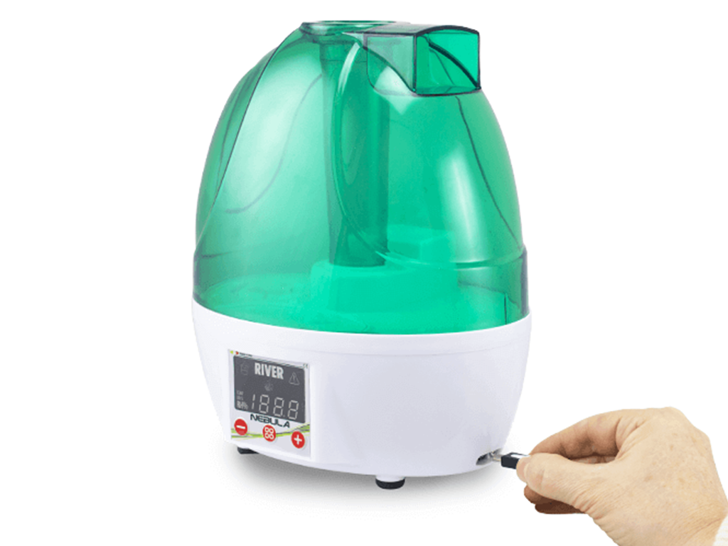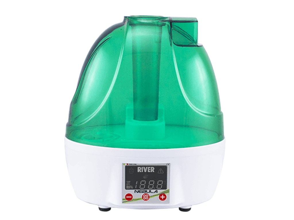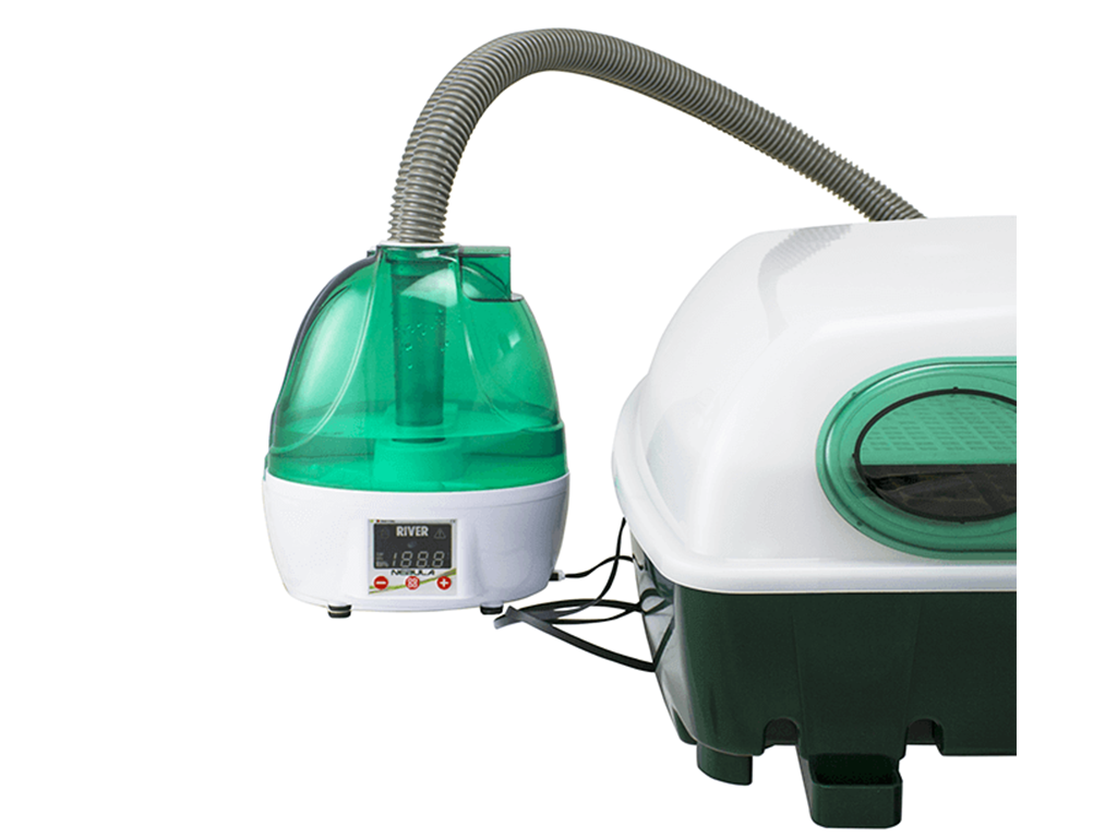 Umidificator automat de aer, pentru menținerea umidității necesare, potrivit pentru incubatoarele RIVER SYSTEMS, sistem patentat NEBULA®, cu control digital al umidității, interval de umiditate de la 30% la 90% , minimizează fluctuațiile de temperatură în timpul incubării, cu o capacitate a rezervorului de 2 l, cu afișaj digital.